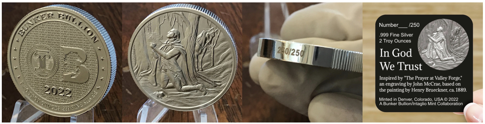 Inspired by "The Prayer at Valley Forge," an engraving by John McCrae, based on the painting by Henry Brueckner, ca. 1889. A special thanks to Mark Bogani, Anthony Grat and the @intagliomint team for their top notch work and professionalism as they made my ‘In God We Trust” vision come to life. It is my sincere hope that others will find this beautiful piece as moving and inspiring as I do. HiHo